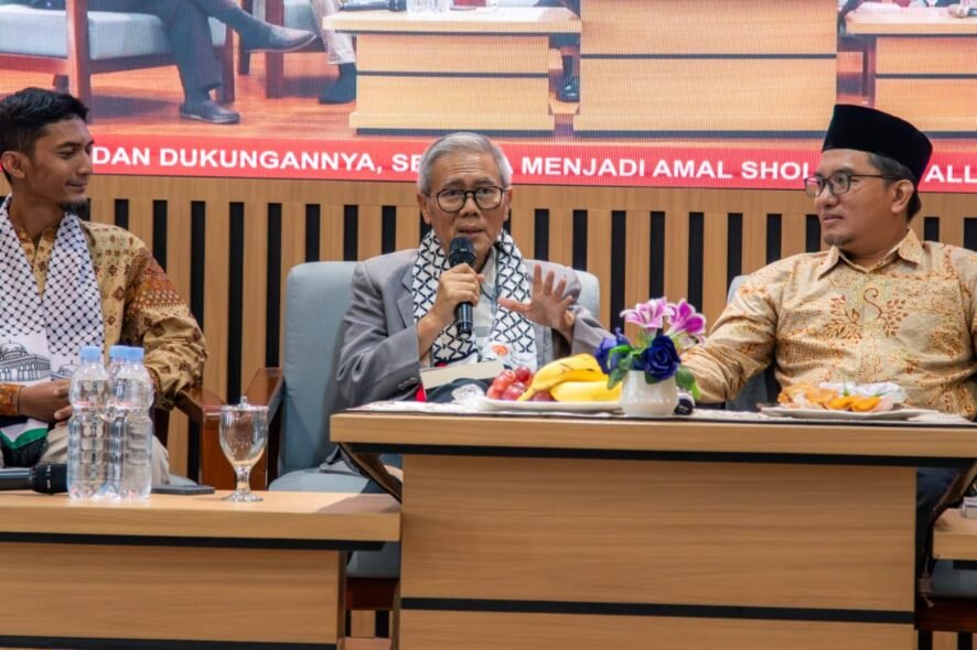 Diskusi ini menghadirkan Dr. Aat Surya Syafaat, Chairul Akhmad (Unpacking Indonesia.ID), dan Desi Fitriani (Wartawan Metro TV), dengan moderator Imam Santoso, M.I.Kom. Para pembicara menekankan pentingnya peran jurnalisme, akademisi, dan masyarakat dalam menjaga narasi kebenaran tentang Palestina di tengah disinformasi global.