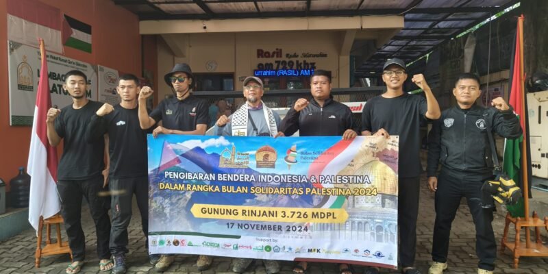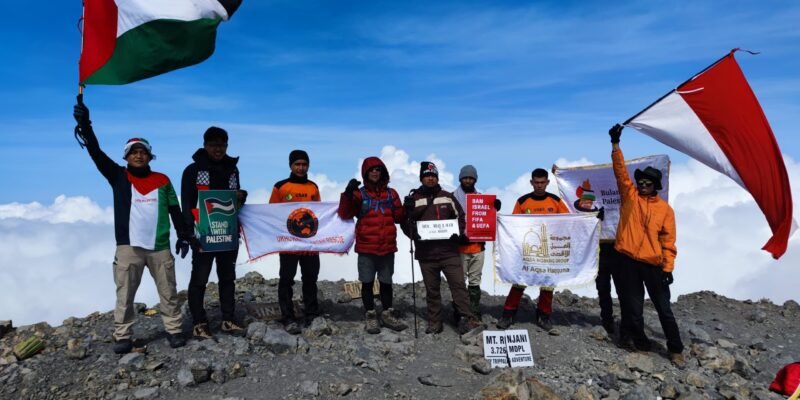 Pendaki AWG Berhasil Kibarkan Bendera Palestina di Puncak Gunung Rinjani