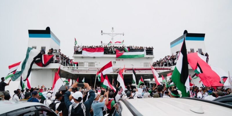 Dikomando oleh AWG, Ribuan Orang Kibarkan Bendera Palestina di Selat Sunda