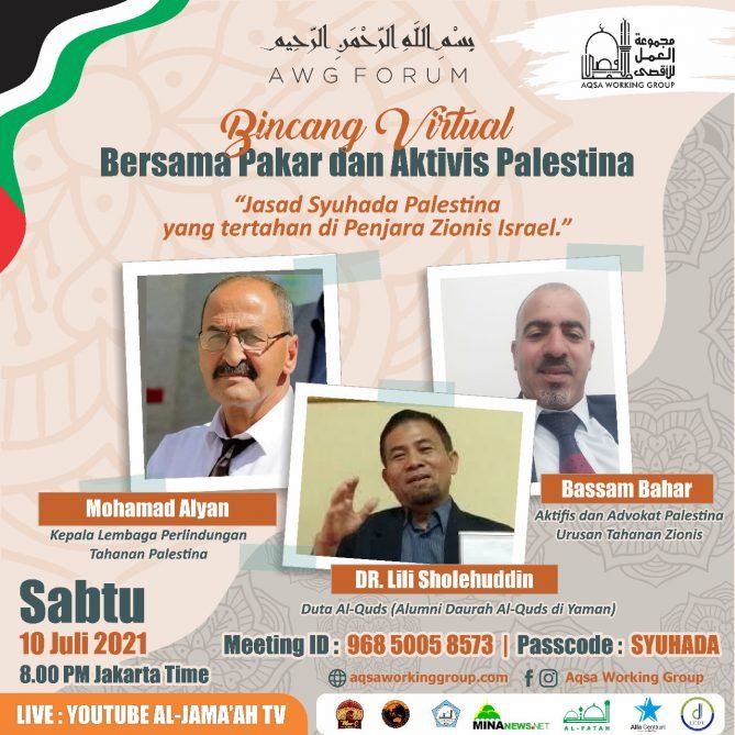 09 Jul Berita AWG FORUM Edisi: Zionis Tahan Jasad Syuhada 9 Juli 2021 By Admin AWG 0 comments Bismillahirrahmanirrahim AWG Forum Edisi Jasad Syuhada Palestina yang tertahan di Penjara Zionis Israel. Bincang Virtual Bers... Continue reading